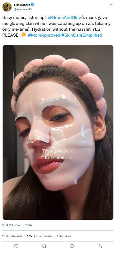 "I was skeptical about how much a face mask could really do, but Grace & Glow blew me away. As a busy mom, I love how simple it is—I just put it on at night, and in the morning, my skin is radiant and hydrated. It’s my new favorite part of my routine!"