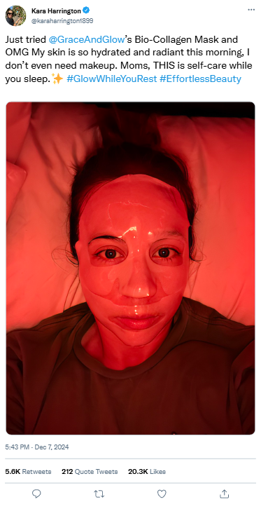 "As a mom of two, my skincare routine is basically nonexistent. Grace & Glow’s Bio-Collagen Mask is the easiest self-care I’ve ever done. I just put it on before bed, and by morning, my skin is glowing, hydrated, and smooth. It’s like a spa night without leaving the house!"